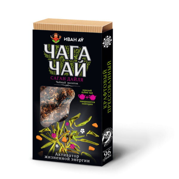 Zloženie: huba čaga, fermentovaná vŕbovka úzkolistá, výhonky Sagan-Dailya(adamsov rododendron), list bergénie, kurilský ivan čaj.