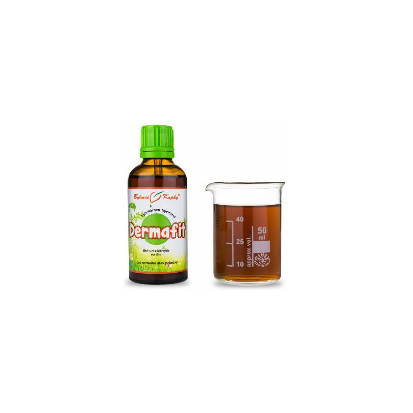 Dermafit (bylinná tinktúra - bylinné kvapky z radu Bylinkárovho tajomstva). Prírodný bylinný extrakt pre normálny stav pokožky.