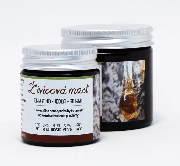 Univerzálna antiseptická bylinná masť zo živíc ihličnanov na kožné, pohybové aj dýchacie problémy